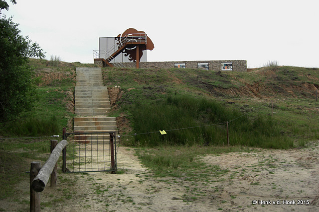 Als je langs de A28 rijd tussen Hoogeveen en Assen dan kom je dit kunstwerk tegen bovenop een zandwal, alleen zie je het dan van de andere kant.