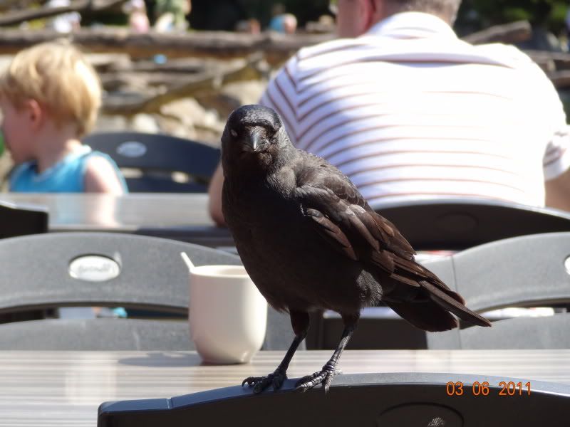 en deze, wat is het, een kauw ? die zat op de restjes te wachten.
