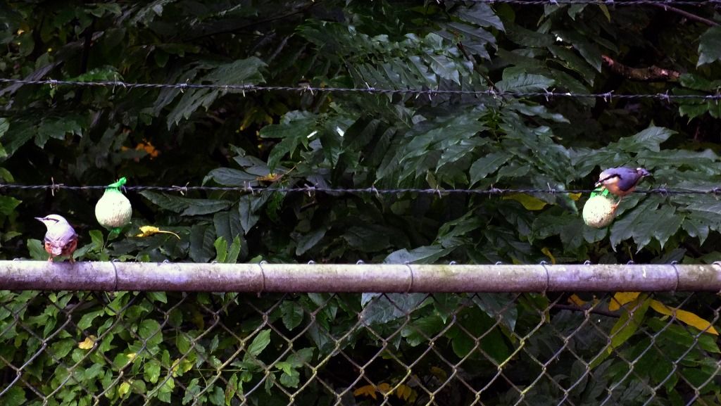 Ik zag op mijn werk, boomklevers (verbeter mij als ik het verkeerd heb), die aan de vetbollen zaten te knabbelen. 2 stuks, maar 1 vloog weg.