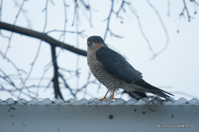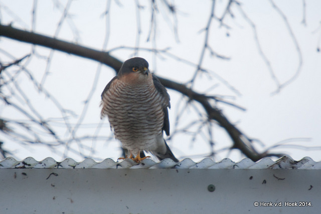 Vanmorgen opnieuw bezoek van die vervelende sperwer aan het gaas.