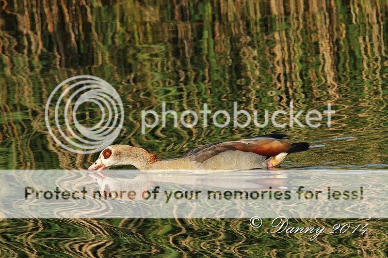 • Eenzame nijlgans drijvend door het abstracte decor.